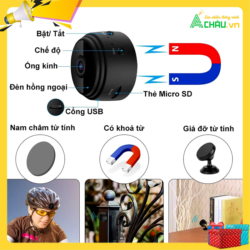 - Camera mini tích hợp nam châm, dễ dàng gắn vào các vật liệu sắt