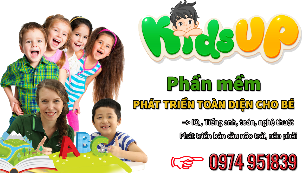 Kidsup là phần mềm Phát triển tư duy toàn diện: IQ, Tiếng Anh, Toán, Âm nhạc, Nghệ thuật và ứng dụng công nghệ trí tuệ nhân tạo, tự động giúp điều chỉnh lộ trình phù hợp với khả năng từng bé. Làm chủ 500 từ vựng tiếng Anh, tiếng Việt cơ bản chỉ sau 3 tháng sử dụng
